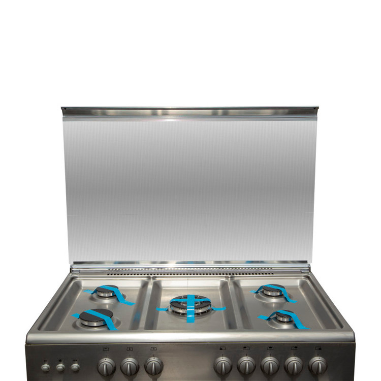 ساخت ایتالیا از جنس استیل ضد زنگ و ضد لک فر و گریل گازی صفحه رویی یک تیکه نظافت خودکار داخل فر (Self Clean) فن داخل فر ( Heating Surronded Fan) سامانه طبقاتی داخل فر چراغ داخل فر
